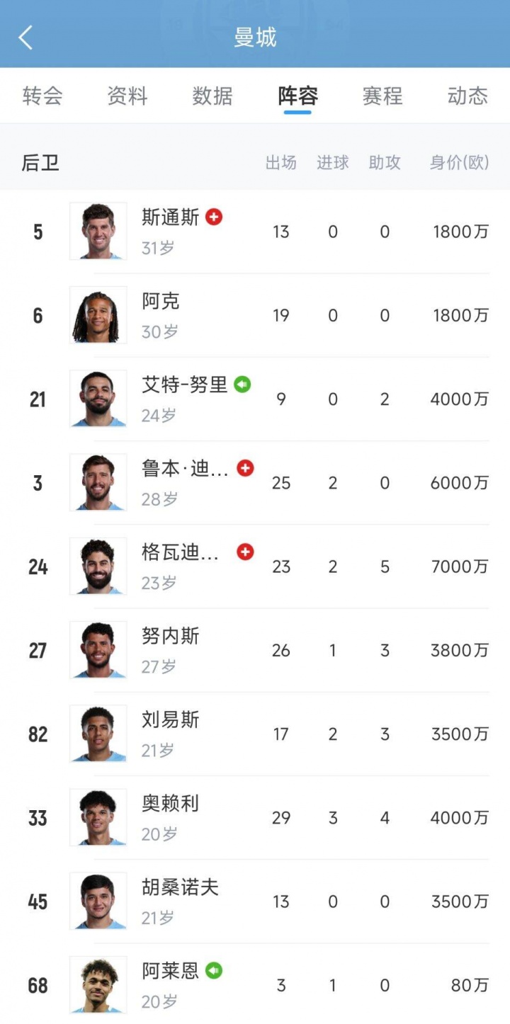 去年12月8日,瓜迪奥拉确认斯通斯受伤,缺席时间不确定。今年1月6日,曼城宣布格瓦迪奥尔右腿胫骨骨折,将接受手术,伤缺时间待定。同一天,瓜迪奥拉在发布会上确认鲁本·迪亚斯腿筋受伤,将缺席4-6周。